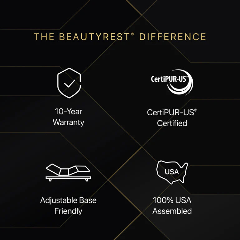 Experience the best of Beautyrest®, featuring advanced temperature management technology, premium foams, and advanced, Triple-Stranded Pocketed Coil® Technology for conforming support and motion separation. Micro Diamond™ Memory Foam offers a specialized upgrade for cooling comfort, as the foam, infused with heat-conducting diamond particles, is designed to help move heat away from the body for a cool sleep. With the inclusion of premier materials and advanced sleep technology, Black® optimally aligns at the intersection of luxury and innovation for an extraordinarily comfortable sleep.