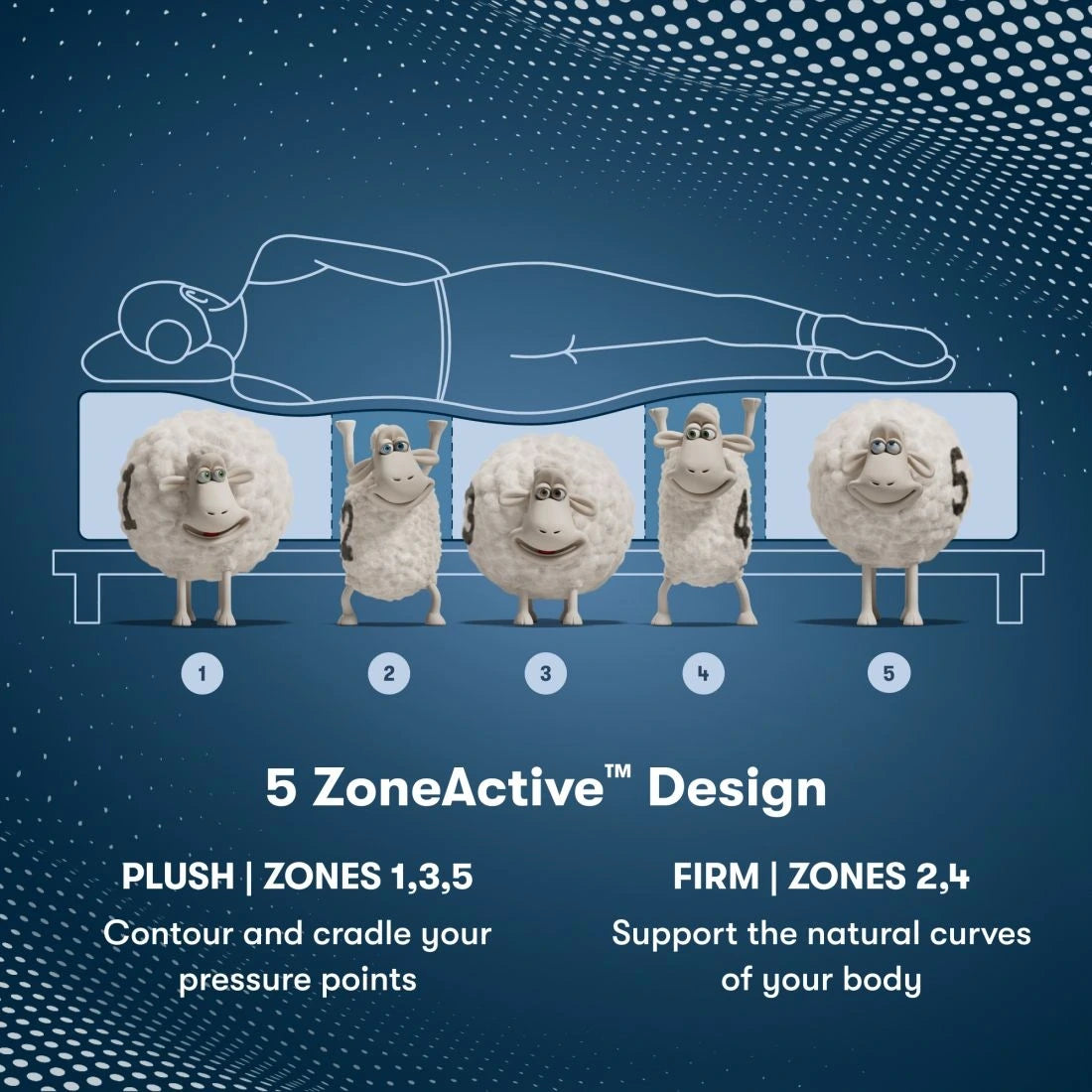 - Our 5 ZoneActive™ Design improves spinal alignment by pairing zoned coils and latex foam for targeted support and restorative pressure relief.
